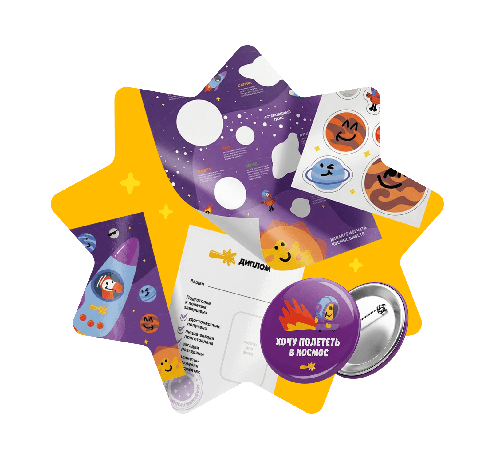Дарим карту Солнечной системы с наклейками, значок и удостоверение космонавта